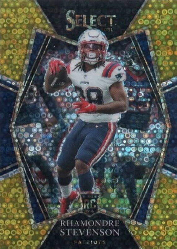 The Rhamondre Stevenson 2021 Select #175 Premier Level Gold Disco /10 Rookie card in Raw condition has not changed in price in the last 30 days and was last sold for $20.00 .