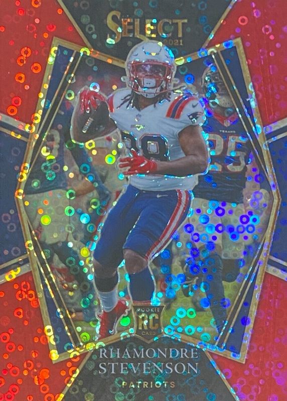 The Rhamondre Stevenson 2021 Select #175 Premier Level Red Disco /49 Rookie card in Raw condition has not changed in price in the last 30 days and was last sold for $23.00 .
