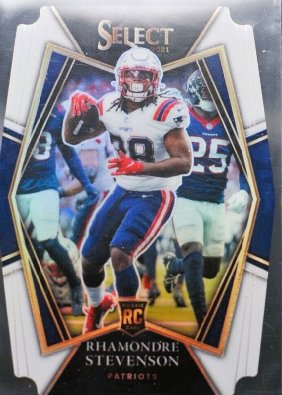The Rhamondre Stevenson 2021 Select #175 Premier Level White Die-Cut /99 Rookie card in Raw condition has moved up $3.04 (+61.4%) in the last 30 days and was last sold for $7.99 .
