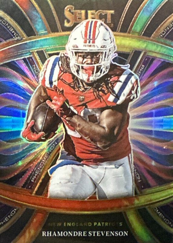This card is 1 of 9 Rhamondre Stevenson's card variations in the 2022 Select set being tracked by Sports Card Investor, including Artistic Selections /(SSP), Phenomenon - Zebra /(SSP), Artistic Selections - Gold /10, Phenomenon - Gold /10, and Phenomenon - Green /5.