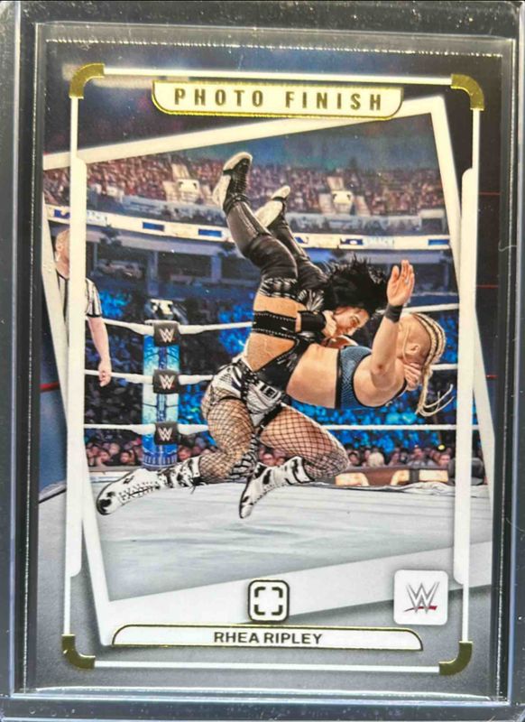 The Rhea Ripley 2024 Photogenic WWE #9 Photo Finish card is 1 of 27 Rhea Ripley's card variations in the 2024 Photogenic WWE set being tracked by Sports Card Investor, including Base, Silver /99, Diamond /75, Wedges /49, and Maze /25.