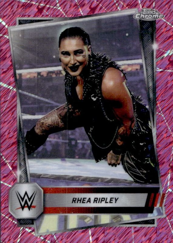 The Rhea Ripley 2025 Topps Chrome WWE #80 Pink Shimmer Refractor card in Raw condition has moved up $0.41 (+9.2%) in the last 30 days and was last sold for $4.85 .
