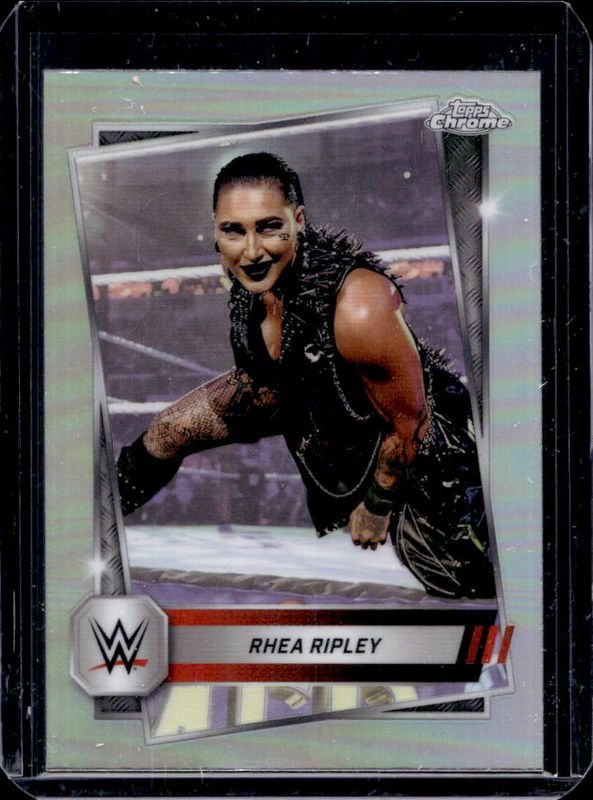 The Rhea Ripley 2025 Topps Chrome WWE #80 Refractor card is 1 of 101 Rhea Ripley's card variations in the 2025 Topps Chrome WWE set being tracked by Sports Card Investor, including Base, Black & Gold Refractor, Geometric Refractor, Neon Green & Black Refractor, and Pink Shimmer Refractor.