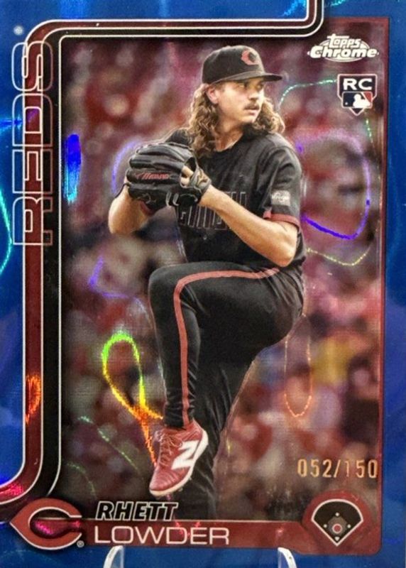 Auctions Ending Soon for Rhett Lowder 2025 Topps Chrome #147 Blue Lava Refractor /150 Rookie RAW