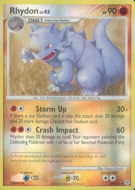 Rhydon 2007 Diamond & Pearl #060/130 Reverse Holo RAW TCG (LIGHTLY PLAYED) Price Guide