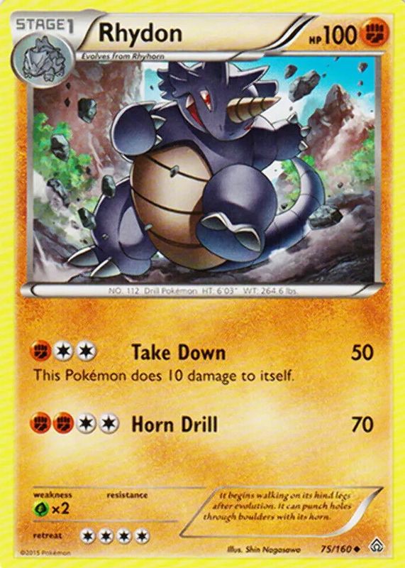 The Rhydon 2015 XY: Primal Clash #075/160 Base card in Raw TCG (Lightly Played) condition has not changed in price in the last 30 days and was last sold for $1.75 .
