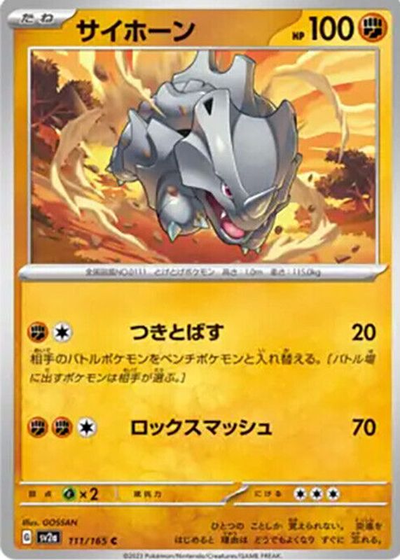 Rhyhorn 2023 Japanese Scarlet & Violet: 151 #111/165 Base RAW TCG (NEAR MINT) Price Guide