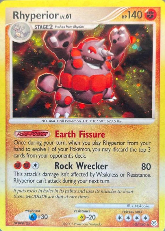 2007 Pokemon Diamond & Pearl Rhyperior Holo #12/130