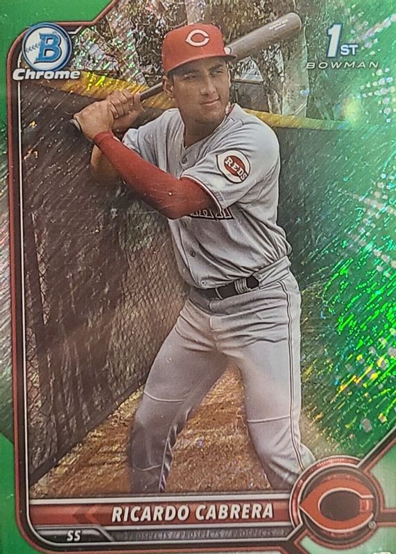 Auctions Ending Soon for Ricardo Cabrera 2022 Bowman Chrome #BCP-158 Prospects - Green Shimmer Refractor /99 (1st) RAW