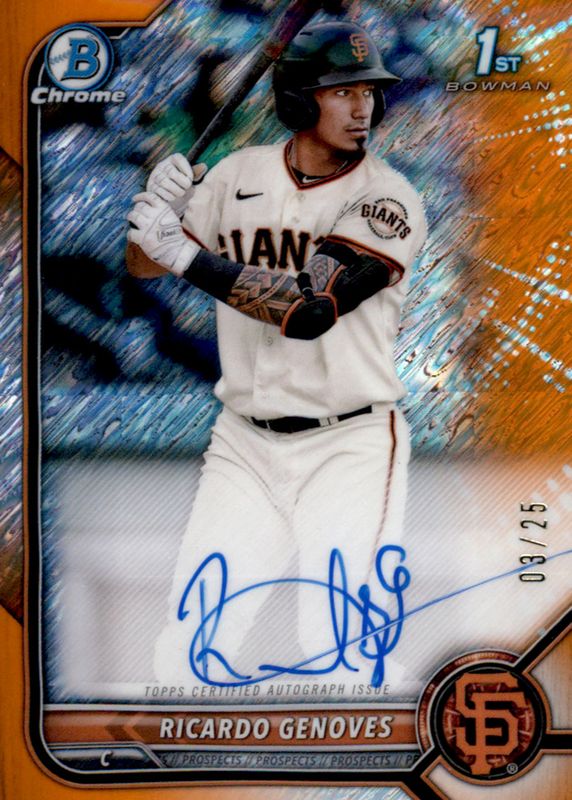 Ricardo Genoves 2022 Bowman #CPA-RGV Chrome Prospect Auto - Orange Shimmer Refractor /25 (1st) RAW Price Guide