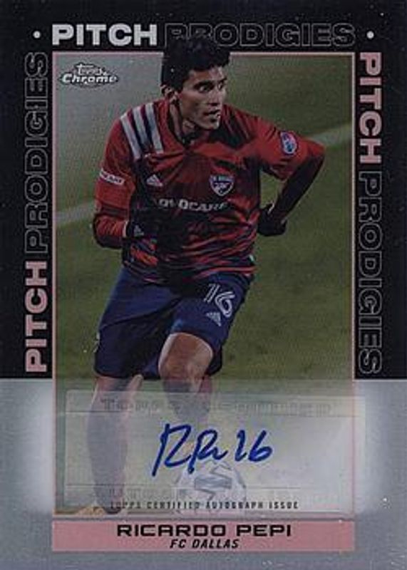 The Ricardo Pepi 2021 Topps Chrome MLS #193 Autographs - Refractor card is 1 of 34 Ricardo Pepi's card variations in the 2021 Topps Chrome MLS set being tracked by Sports Card Investor, including #174 Base, #TF75-9 1975 Topps Footballers, #174 Autographs - Refractor, #193 Pink X-Fractor, and #174 Pink X-Fractor.