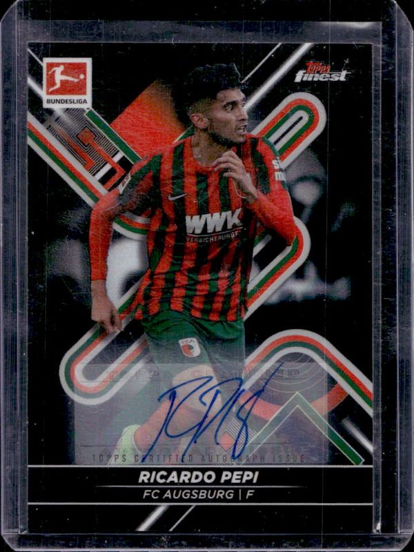 The Ricardo Pepi 2021 Topps Finest Bundesliga #52 Autographs - Black Refractor /250 card is 1 of 32 Ricardo Pepi's card variations in the 2021 Topps Finest Bundesliga set being tracked by Sports Card Investor, including Base, Refractor, Yellow Refractor /350, Yellow Wave Refractor /350, and Pink Refractor /300.