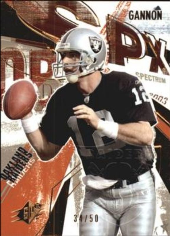 The Rich Gannon 2003 SPx #15 Spectrum /25 card is 1 of 2 Rich Gannon's card variations in the 2003 SPx set being tracked by Sports Card Investor, including Base /1100.