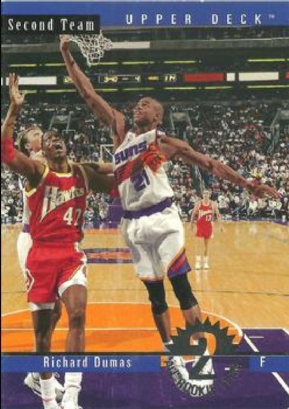The Richard Dumas 1993 Upper Deck #AR10 All Rookie card is 1 of 3 Richard Dumas' card variations in the 1993 Upper Deck set being tracked by Sports Card Investor, including #202 Base, and #58 Base.