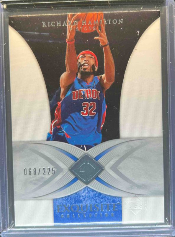 The Richard Hamilton 2006 Upper Deck Exquisite Collection #12 Base /225 card is 1 of 16 Richard Hamilton's card variations in the 2006 Upper Deck Exquisite Collection set being tracked by Sports Card Investor, including Gold /25, Black Rainbow /1, Masterpiece Printing Plates Black /1, Masterpiece Printing Plates Cyan /1, and Masterpiece Printing Plates Magenta /1.