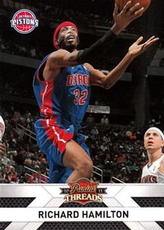 The Richard Hamilton 2010 Threads #114 Base /399 card is 1 of 6 Richard Hamilton's card variations in the 2010 Threads set being tracked by Sports Card Investor, including Century Proof Orange /199, Century Proof Silver /199, Century Proof Gold /99, Century Proof Platinum /25, and Silver Signatures /24.