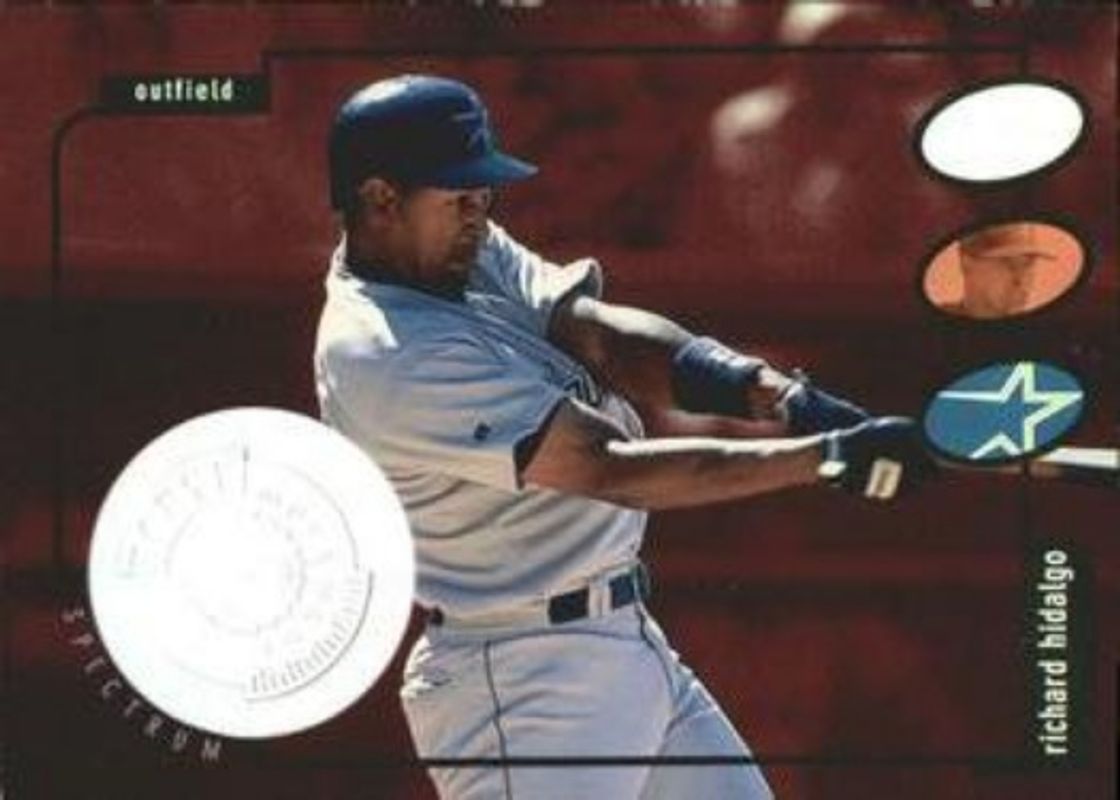 The Richard Hidalgo 1998 SPx Finite #24 Spectrum /2250 card is 1 of 3 Richard Hidalgo's card variations in the 1998 SPx Finite set being tracked by Sports Card Investor, including Base /9000, and Radiance /4500.