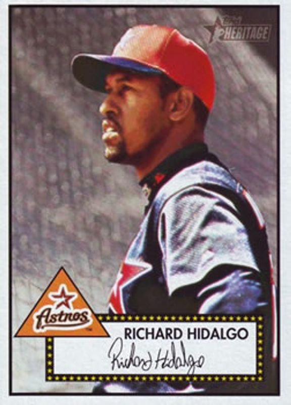 The Richard Hidalgo 2001 Topps Heritage #50b Base card is 1 of 4 Richard Hidalgo's card variations in the 2001 Topps Heritage set being tracked by Sports Card Investor, including Base, Real One Autographs, and Real One Autographs - Red Ink /52.