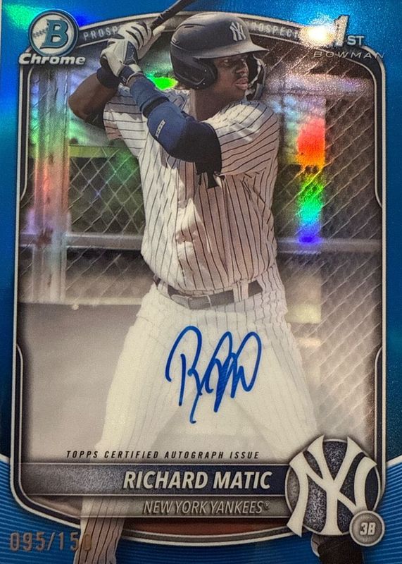2025 Bowman Chrome Richard Matic Blue Refractor /150 Auto New York Yankees 1st