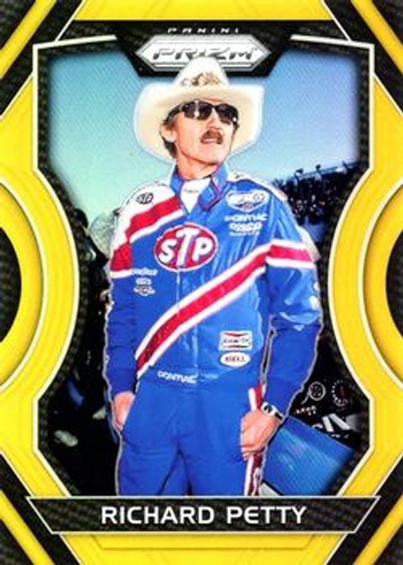 The Richard Petty 2018 Prizm NASCAR #47a Gold /10 card is 1 of 40 Richard Petty's card variations in the 2018 Prizm NASCAR set being tracked by Sports Card Investor, including #47b Base, #47a Base, #47a Camo, #47b Camo, and #47b Purple Flash.
