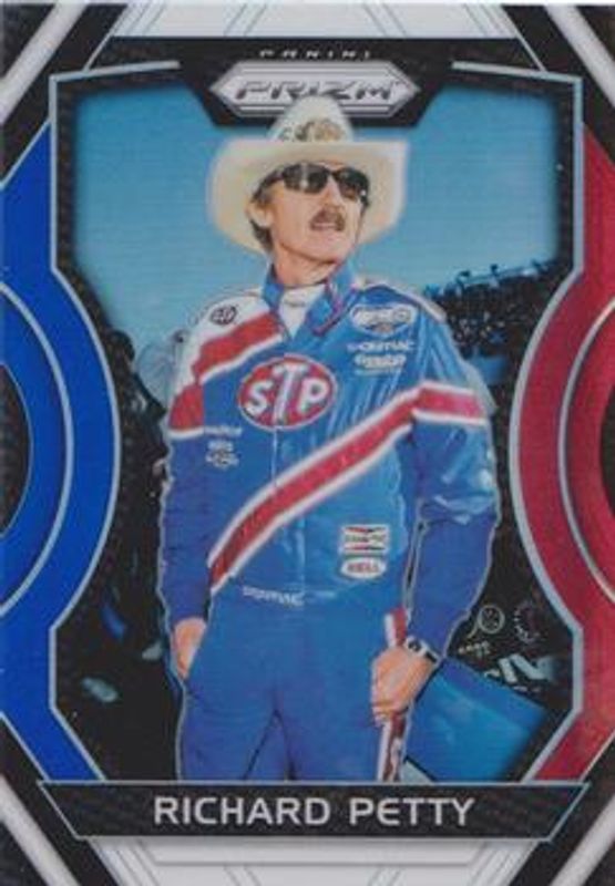 The Richard Petty 2018 Prizm NASCAR #47a Red White Blue card is 1 of 40 Richard Petty's card variations in the 2018 Prizm NASCAR set being tracked by Sports Card Investor, including #47b Base, #47a Base, #47a Camo, #47b Camo, and #47b Purple Flash.