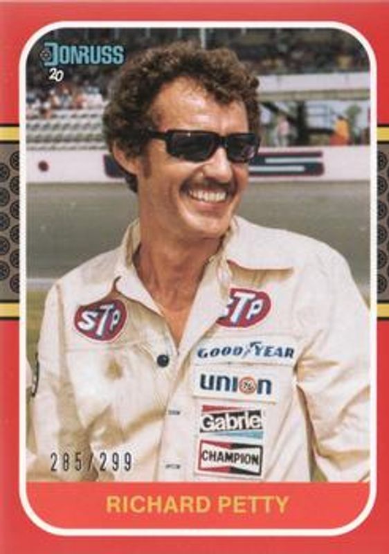 The Richard Petty 2020 Donruss NASCAR #129 Red /299 card is 1 of 87 Richard Petty's card variations in the 2020 Donruss NASCAR set being tracked by Sports Card Investor, including #7 Base, #97 Base, #129 Base, #129 Carolina Blue, and #97 Carolina Blue.