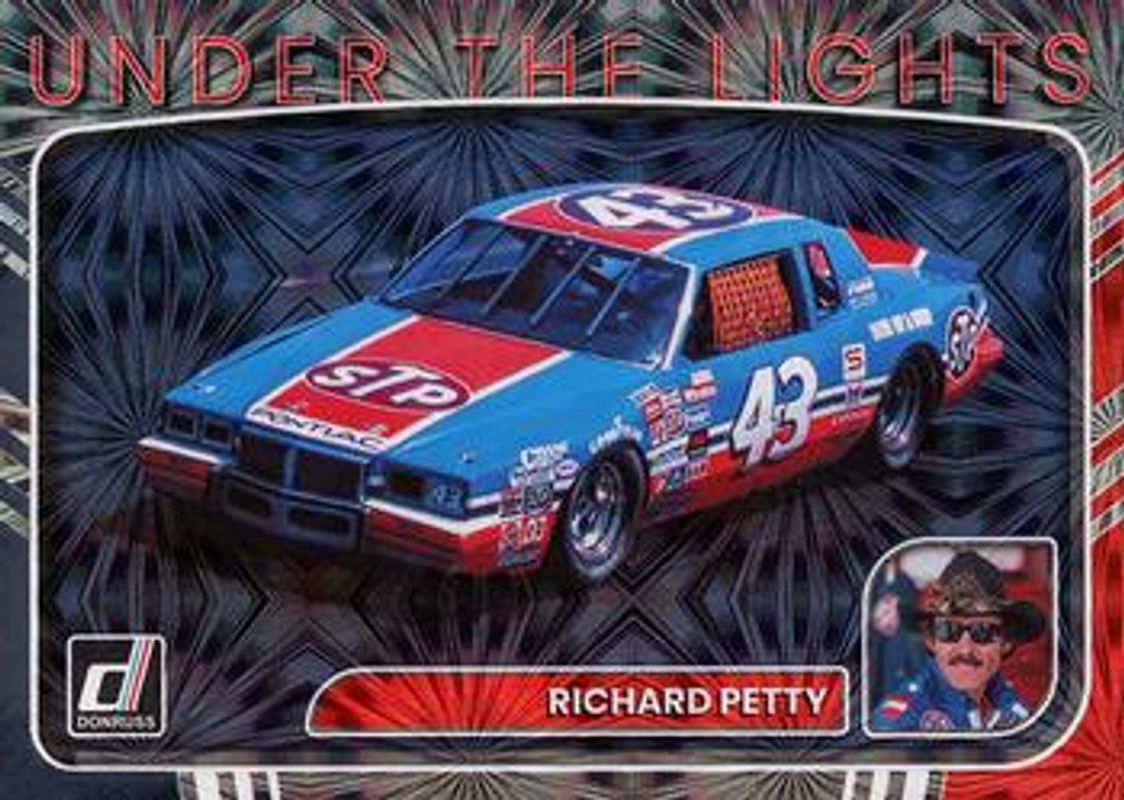 The Richard Petty 2023 Donruss NASCAR #UL15 Under the Lights card is 1 of 158 Richard Petty's card variations in the 2023 Donruss NASCAR set being tracked by Sports Card Investor, including #159 Base, #74 Base, #37 Base, #1 Base, and #1 Carolina Blue.