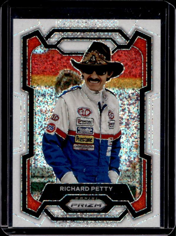 The Richard Petty 2024 Prizm NASCAR #99 Rides - White Sparkle card is 1 of 98 Richard Petty's card variations in the 2024 Prizm NASCAR set being tracked by Sports Card Investor, including Base, Blue Ice, Green, Green Ice, and Red Ice.
