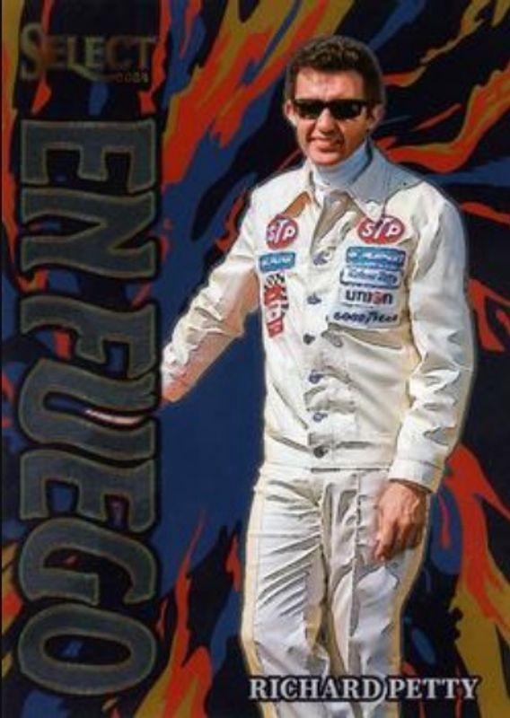 The Richard Petty 2024 Select NASCAR #1 En Fuego card is 1 of 70 Richard Petty's card variations in the 2024 Select NASCAR set being tracked by Sports Card Investor, including #48 Base, #148 Base, #248 Base, #48 Base Orange Flash, and #248 Base Orange Flash.
