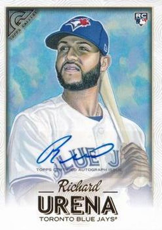 The Richard Urena 2018 Topps Gallery #97 Autographs Rookie card is 1 of 19 Richard Urena's card variations in the 2018 Topps Gallery set being tracked by Sports Card Investor, including Base, Artist Proof, Wood, Private Issue /250, and Green /99.