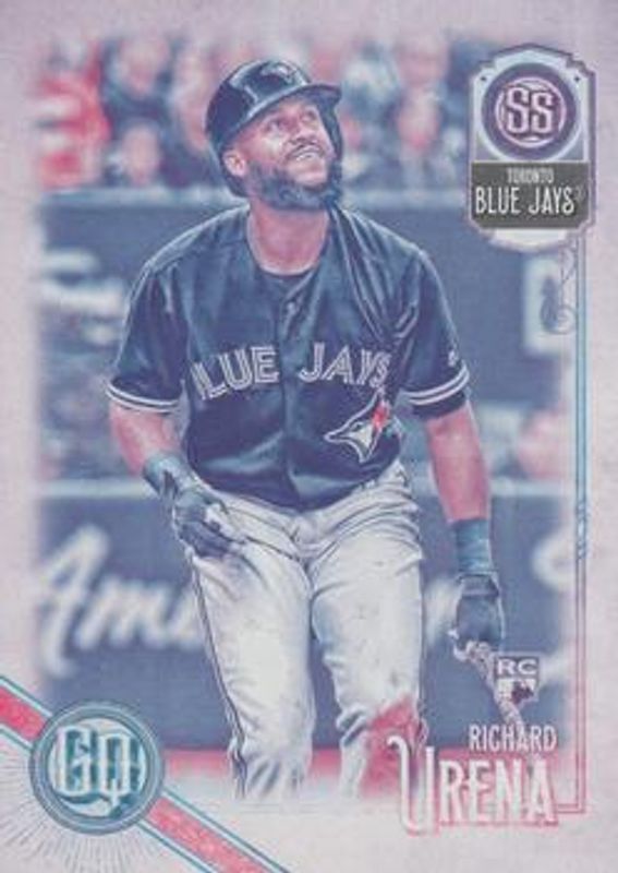The Richard Urena 2018 Topps Gypsy Queen #247 Missing Black Plate Rookie card is 1 of 12 Richard Urena's card variations in the 2018 Topps Gypsy Queen set being tracked by Sports Card Investor, including Base, Bazooka Back, GQ Logo Swap, Green, and Missing Team Name.