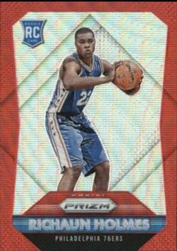 The Richaun Holmes 2015 Prizm #323 Ruby Wave /350 Rookie card is 1 of 17 Richaun Holmes' card variations in the 2015 Prizm set being tracked by Sports Card Investor, including Base, Flash, Green, Orange Wave, and Red White Blue.