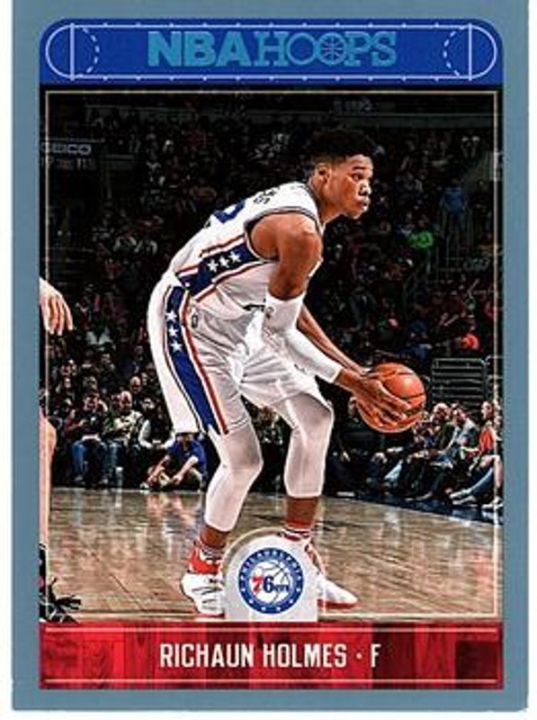 The Richaun Holmes 2017 Hoops #6 Platinum card is 1 of 21 Richaun Holmes' card variations in the 2017 Hoops set being tracked by Sports Card Investor, including Base, Premium Factory Set /199, Blue, Great SIGnificance, and Red Back.