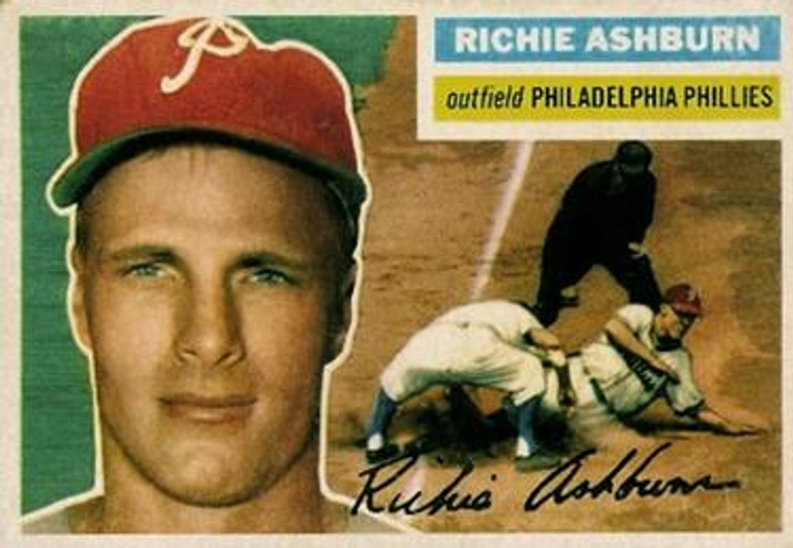 The Richie Ashburn 1956 Topps #120a Base card is 1 of 4 Richie Ashburn's card variations in the 1956 Topps set being tracked by Sports Card Investor, including Base, Gray Back, and White Back.