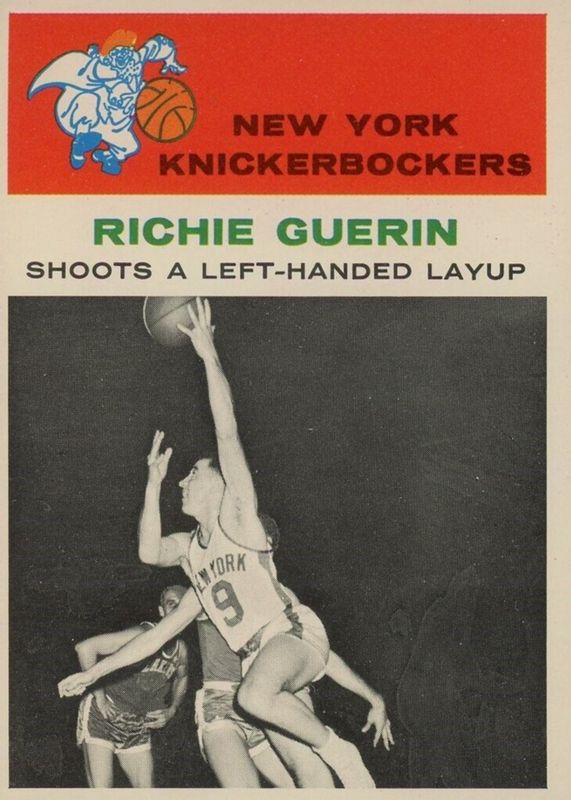 Richie Guerin's Basketball cards are available in at least 2 sets. Richie Guerin's biggest 7-day price movers are 1961 Fleer #52 In Action, 1961 Fleer #17 Base, and 2005 Topps 1952 Style #FFA-RGU All Time Fan Favorites Autographs Rainbow Foilboard /10.
