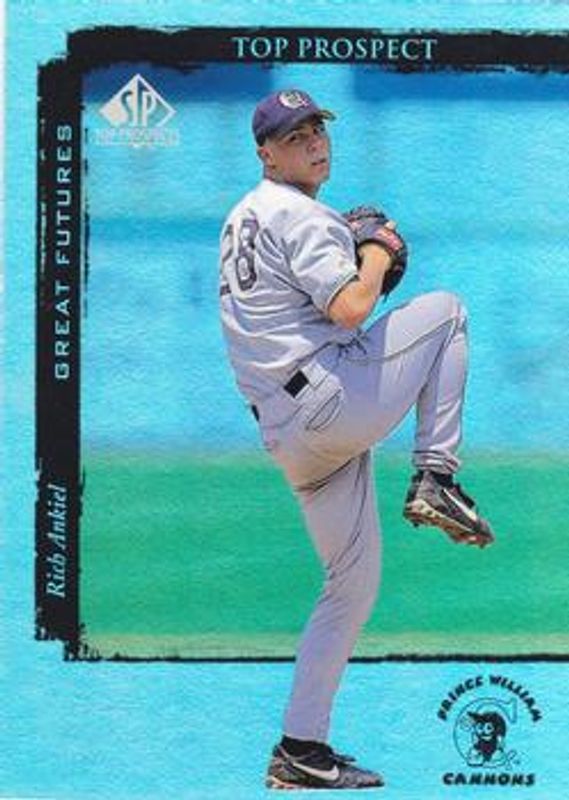 The Rick Ankiel 1999 SP Top Prospects #GF2 Great Futures Rookie card is 1 of 7 Rick Ankiel's card variations in the 1999 SP Top Prospects set being tracked by Sports Card Investor, including #4 Base, #13 Base, #13 President's Edition /10, #4 President's Edition /10, and #RIA Chirography.