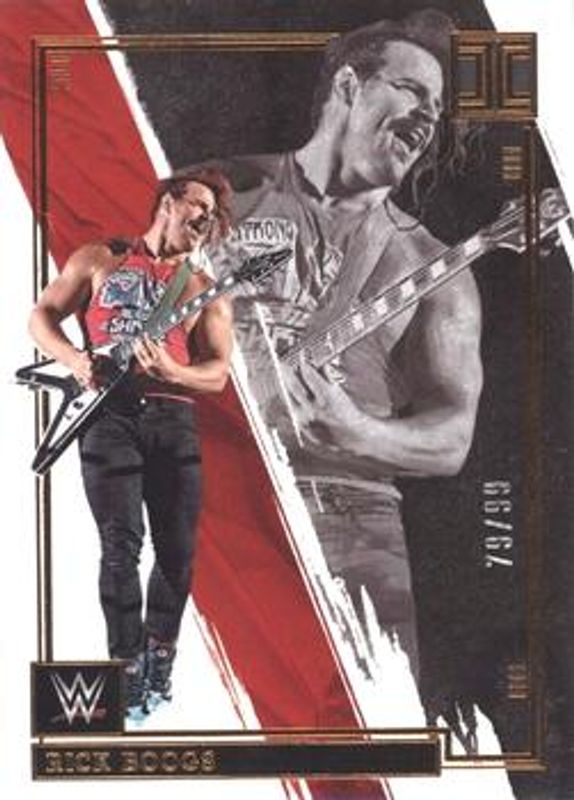 The Rick Boogs 2022 Impeccable WWE #93 Base /99 card is 1 of 10 Rick Boogs' card variations in the 2022 Impeccable WWE set being tracked by Sports Card Investor, including Silver /49, Gold /35, Holo Silver /25, Holo Gold /10, and Platinum /1.