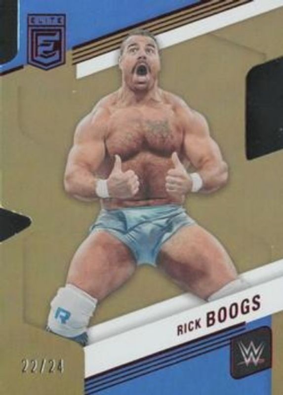 The Rick Boogs 2023 Elite WWE #83 Aspirations Die-Cut /24 card is 1 of 20 Rick Boogs' card variations in the 2023 Elite WWE set being tracked by Sports Card Investor, including Base, Green, Pink, Razzle Dazzle, and Red.