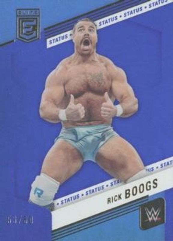 The Rick Boogs 2023 Elite WWE #83 Status /80 card is 1 of 20 Rick Boogs' card variations in the 2023 Elite WWE set being tracked by Sports Card Investor, including Base, Green, Pink, Razzle Dazzle, and Red.
