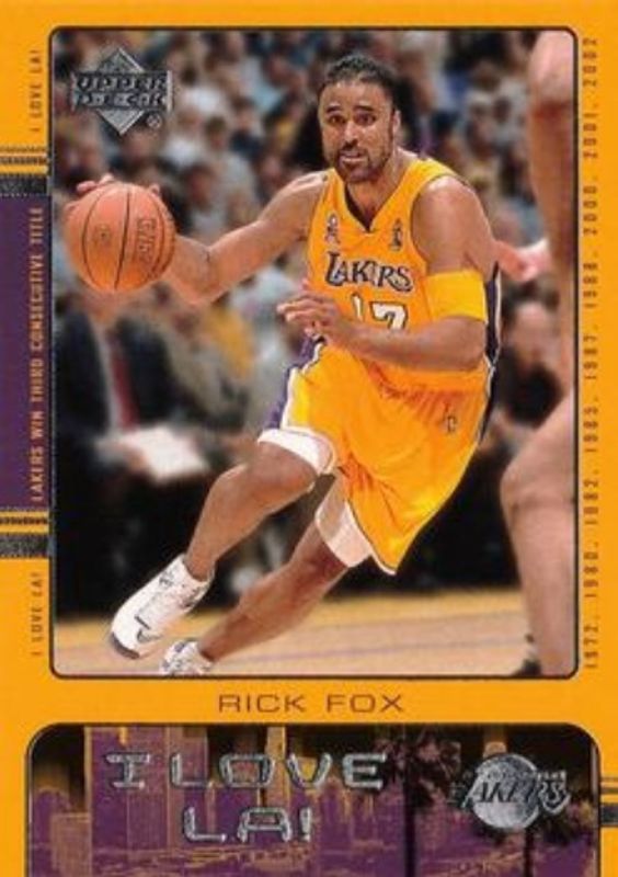 The Rick Fox 2002 Upper Deck #LA3 I Love LA! card is 1 of 6 Rick Fox's card variations in the 2002 Upper Deck set being tracked by Sports Card Investor, including Base, UD Exclusives /100, All Access Jerseys, Star Imports Jerseys, and UD Game Jerseys Series One.