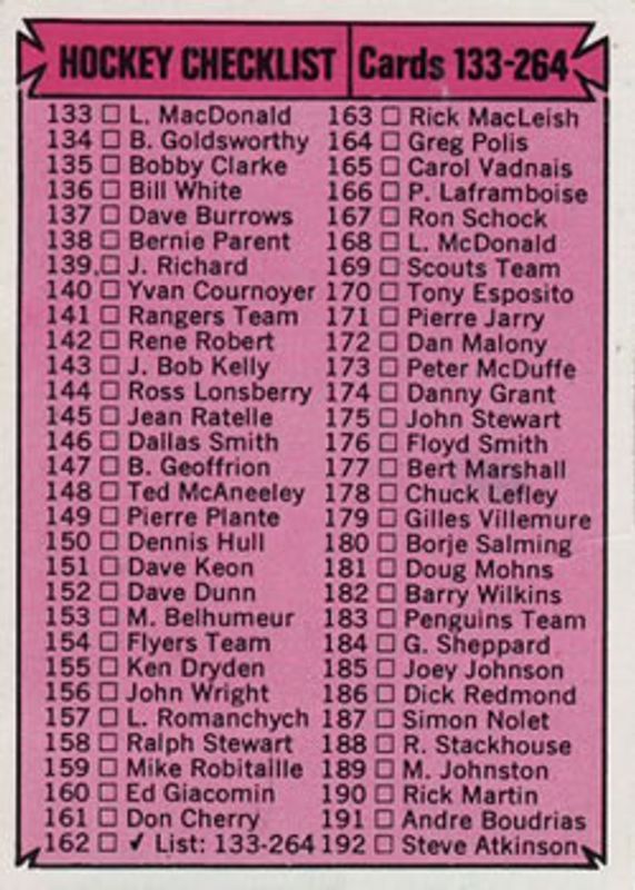 The Rick MacLeish 1974 Topps #162 Base card is 1 of 2 Rick MacLeish's card variations in the 1974 Topps set being tracked by Sports Card Investor, including Base.