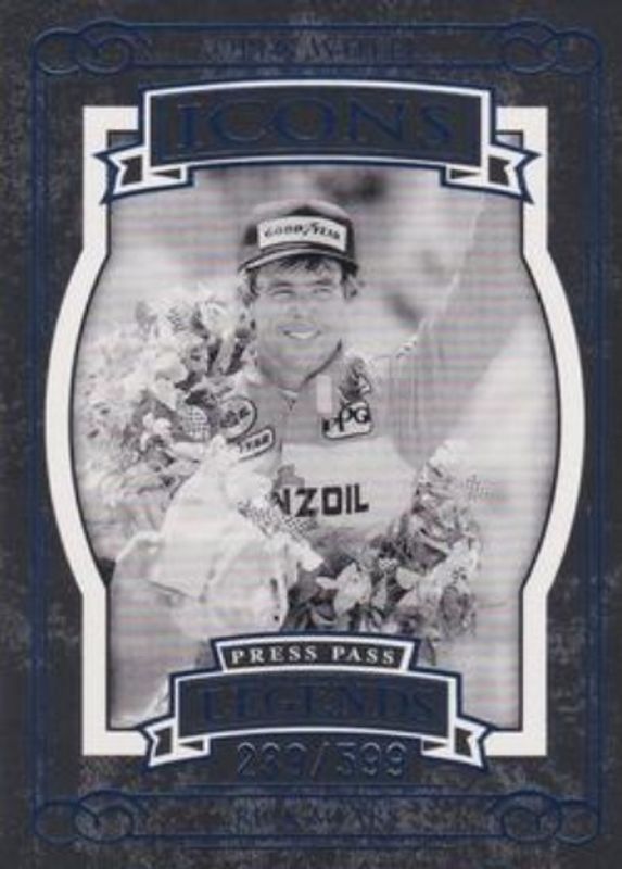 The Rick Mears 2008 Press Pass Legends #60 Blue /599 card is 1 of 40 Rick Mears' card variations in the 2008 Press Pass Legends set being tracked by Sports Card Investor, including #60 Base, #22 Base, #22 Blue /599, #22 Bronze /299, and #60 Bronze /299.