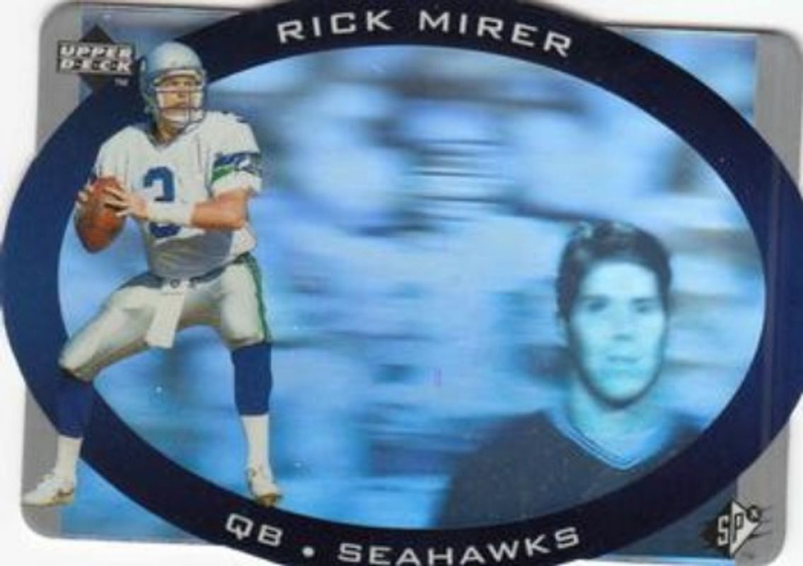 The Rick Mirer 1996 SPx #44 Base card is 1 of 2 Rick Mirer's card variations in the 1996 SPx set being tracked by Sports Card Investor, including Gold.