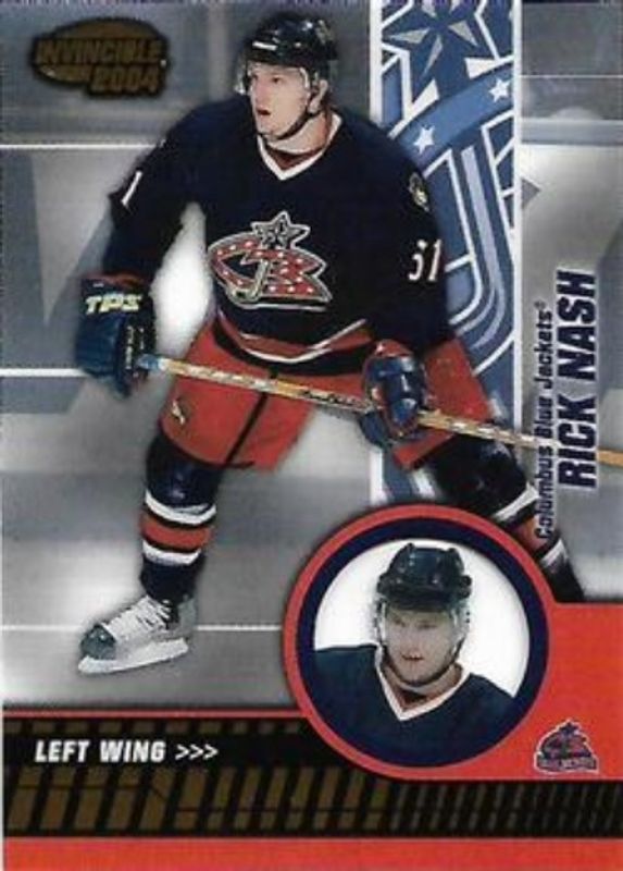 The Rick Nash 2003 Pacific Invincible #28 Base /799 card is 1 of 6 Rick Nash's card variations in the 2003 Pacific Invincible set being tracked by Sports Card Investor, including Retail, Red /850, Blue /350, Featured Performers, and New Sensations.