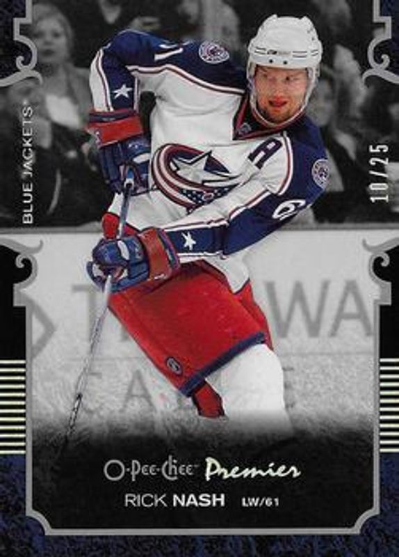 The Rick Nash 2007 O-Pee-Chee Premier #61 Silver Spectrum /35 card is 1 of 12 Rick Nash's card variations in the 2007 O-Pee-Chee Premier set being tracked by Sports Card Investor, including Base /299, Gold /50, Gold Spectrum /15, Black /1, and Remnants Triples /100.