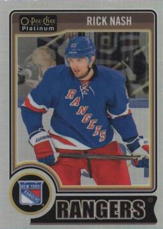 The Rick Nash 2014 O-Pee-Chee Platinum #84 Rainbow card is 1 of 13 Rick Nash's card variations in the 2014 O-Pee-Chee Platinum set being tracked by Sports Card Investor, including Base, Platinum Traxx, White Ice /199, Red Prism /135, and Blue Cube /65.