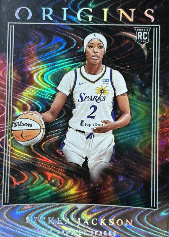 The Rickea Jackson 2024 Origins WNBA #74 Swirl /(SSP) Rookie card in Raw condition has not changed in price in the last 30 days and was last sold for $65.00 .