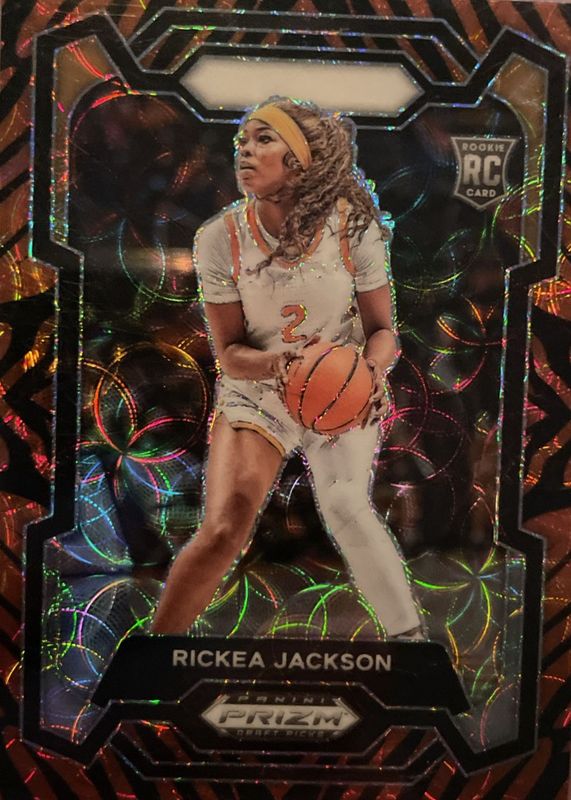 The Rickea Jackson 2024 Prizm Draft Picks #44 Tiger Stripe /(SSP) Rookie card in Raw condition has not changed in price in the last 30 days and was last sold for $17.09 .
