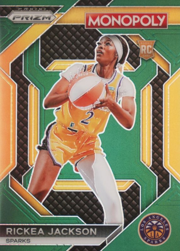 The Rickea Jackson 2024 Prizm Monopoly WNBA #WNBA25 Insert - Green /24 Rookie card in Raw condition has not changed in price in the last 30 days and was last sold for $37.00 .