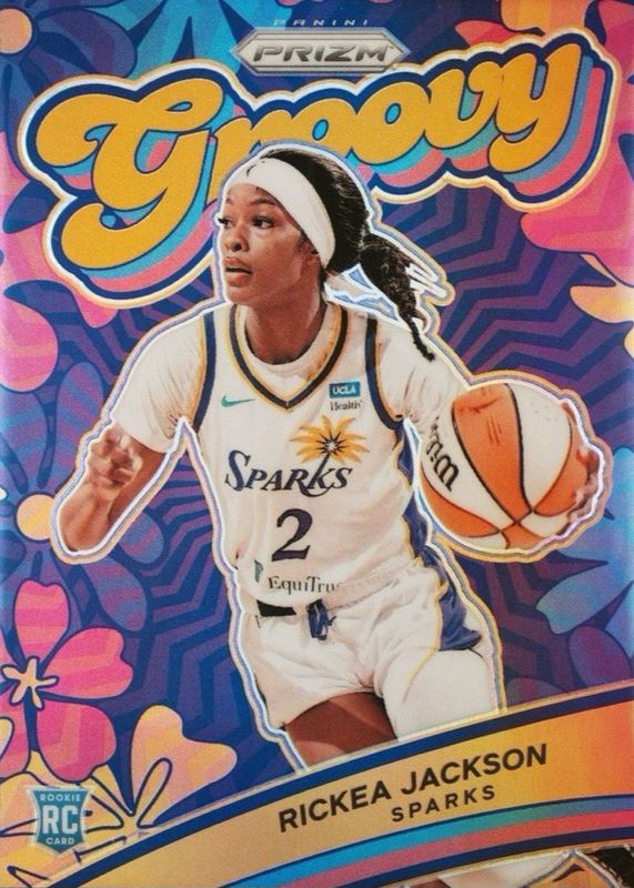 The Rickea Jackson 2024 Prizm WNBA #14 Groovy - Gold /10 Rookie card in Raw condition has not changed in price in the last 30 days and was last sold for $76.00 .